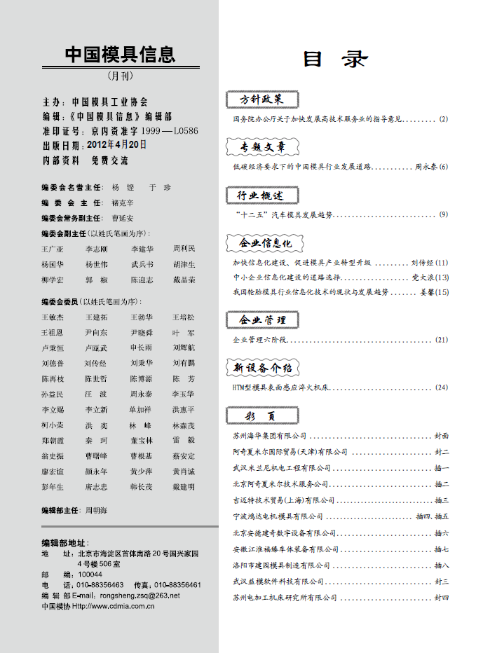 中國模具信息2012年第四期目錄