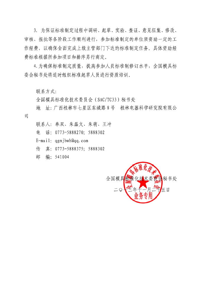 關于征集2013年第三批模具標準制定工作組成員單位的通知