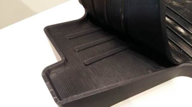 該墊子下方是硬的塑料,上面是可以折疊的橡膠材質(zhì)。當(dāng)打印像1000x800x500mm這樣大型的產(chǎn)品的時(shí)候,Object 1000 Plus就派上了用場(chǎng),不僅可以1:1的尺寸制造汽車,航空航天行業(yè)需要的原型,而且經(jīng)濟(jì)。