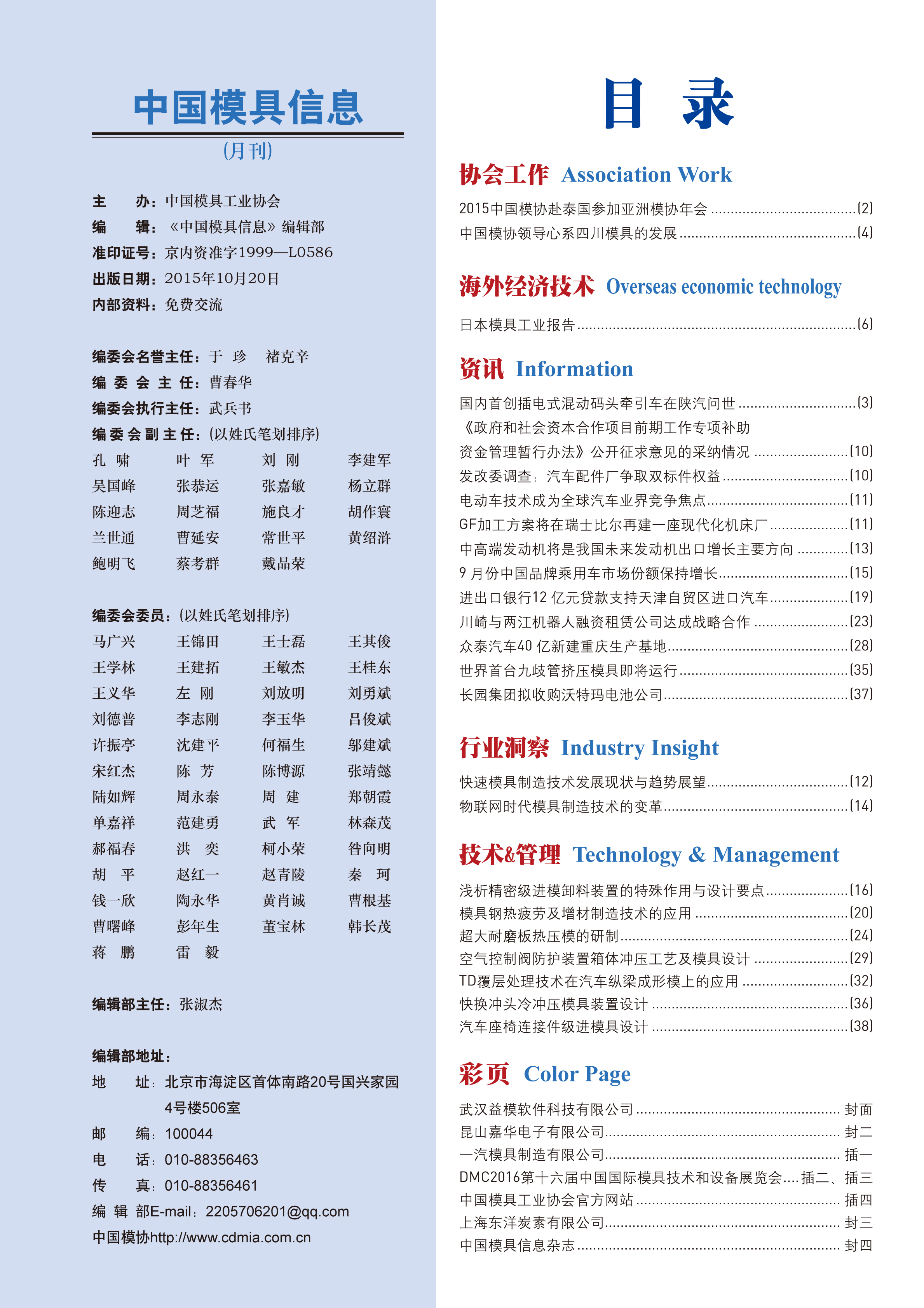 中國模具信息2015年第十期目錄