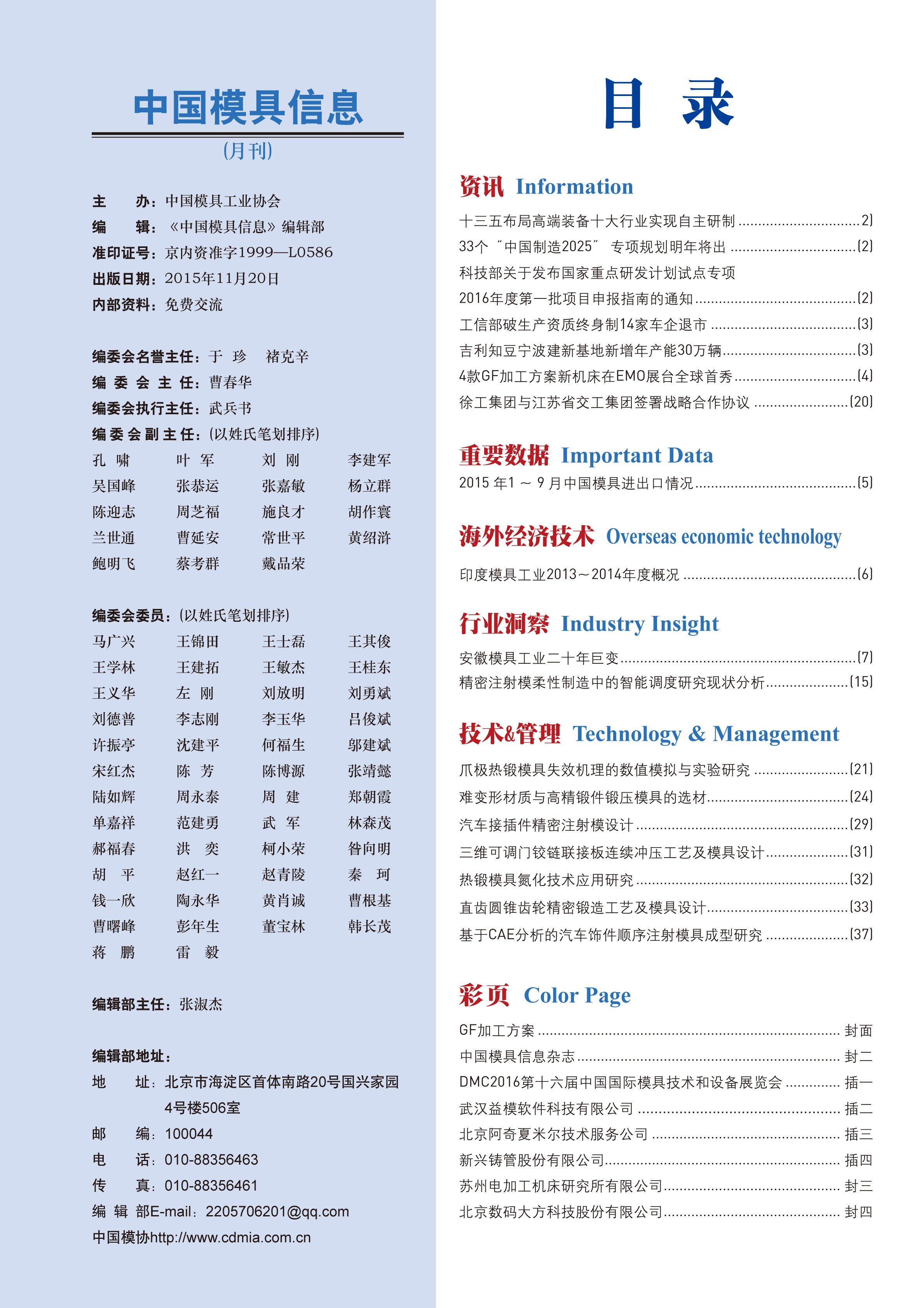 模具行業“十四五”發展綱要? ?100元/本? ? ?聯系電話:010-88356463