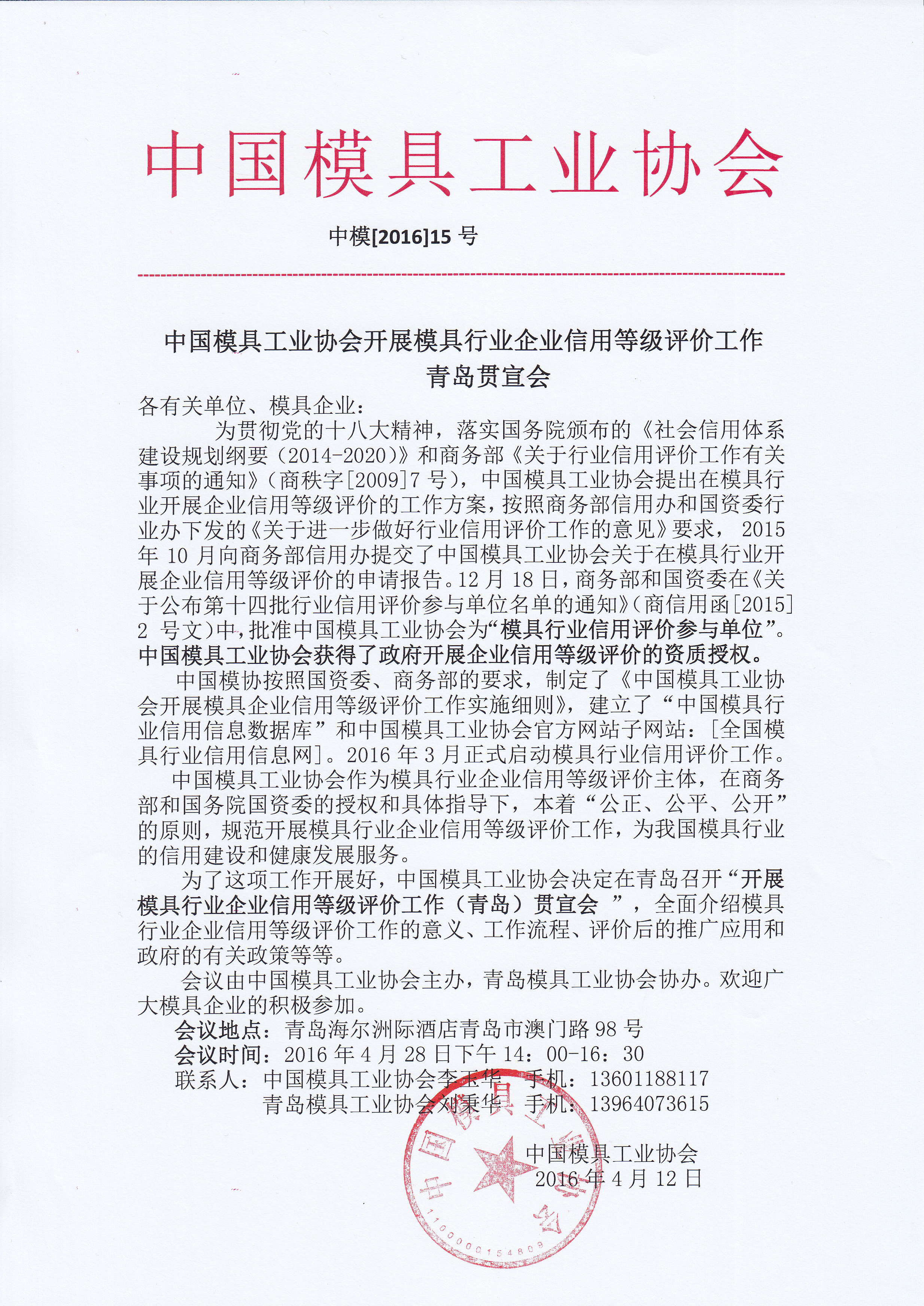 中國模具工業協會開展模具行業企業信用等級評價工作青島貫宣會