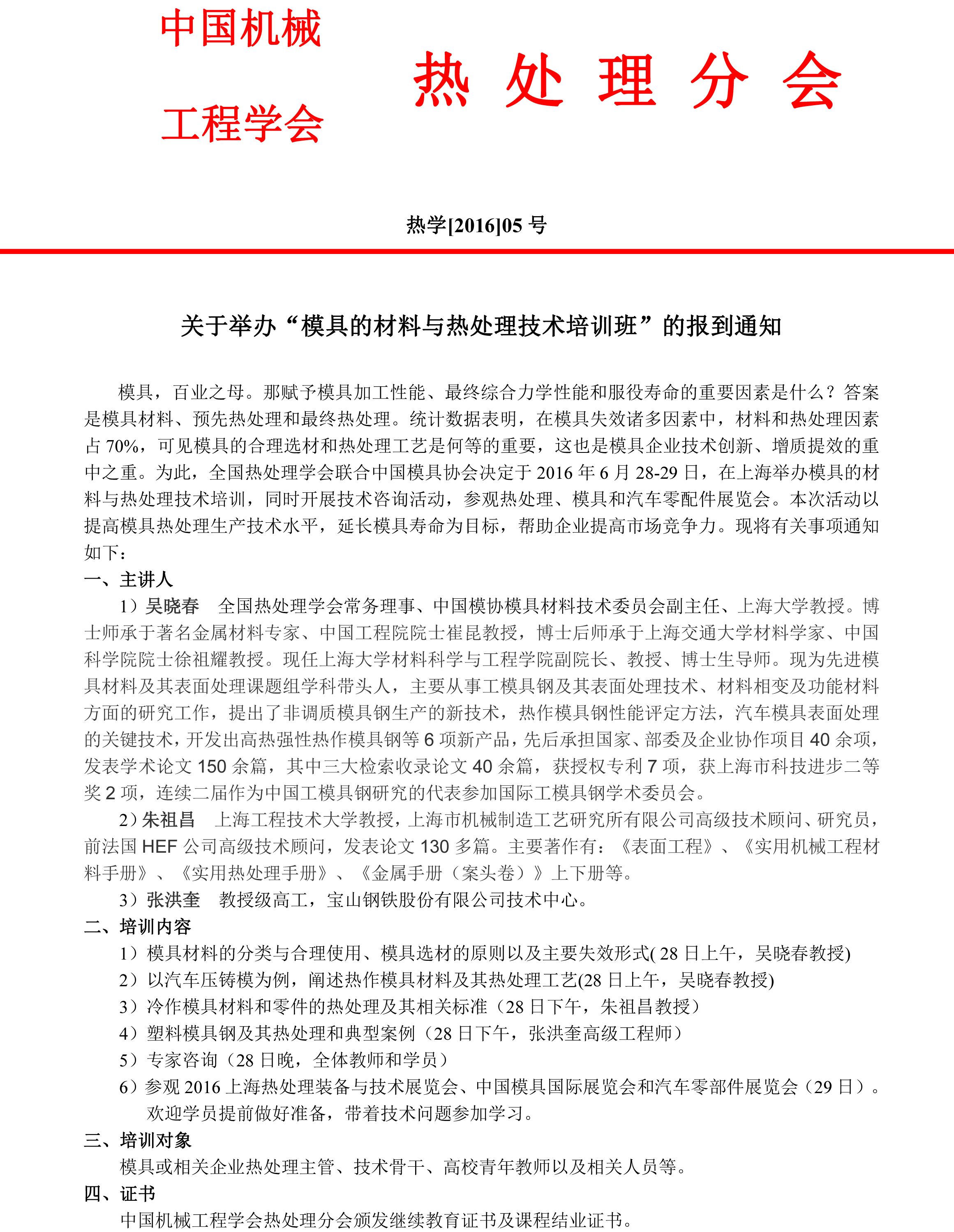 關(guān)于舉辦“模具材料與熱處理技術(shù)培訓(xùn)”的通知