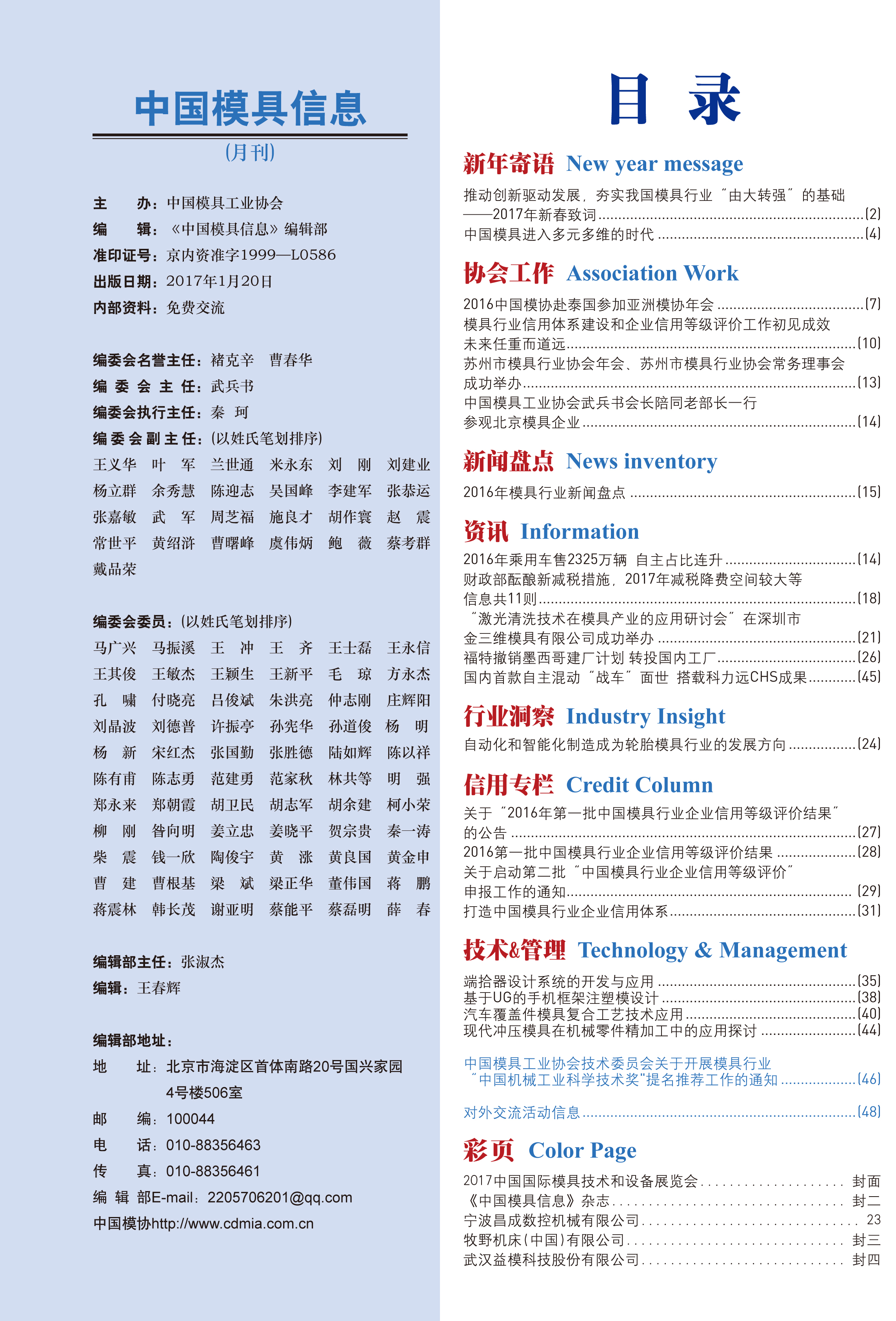 中國(guó)模具信息2017年第一期目錄