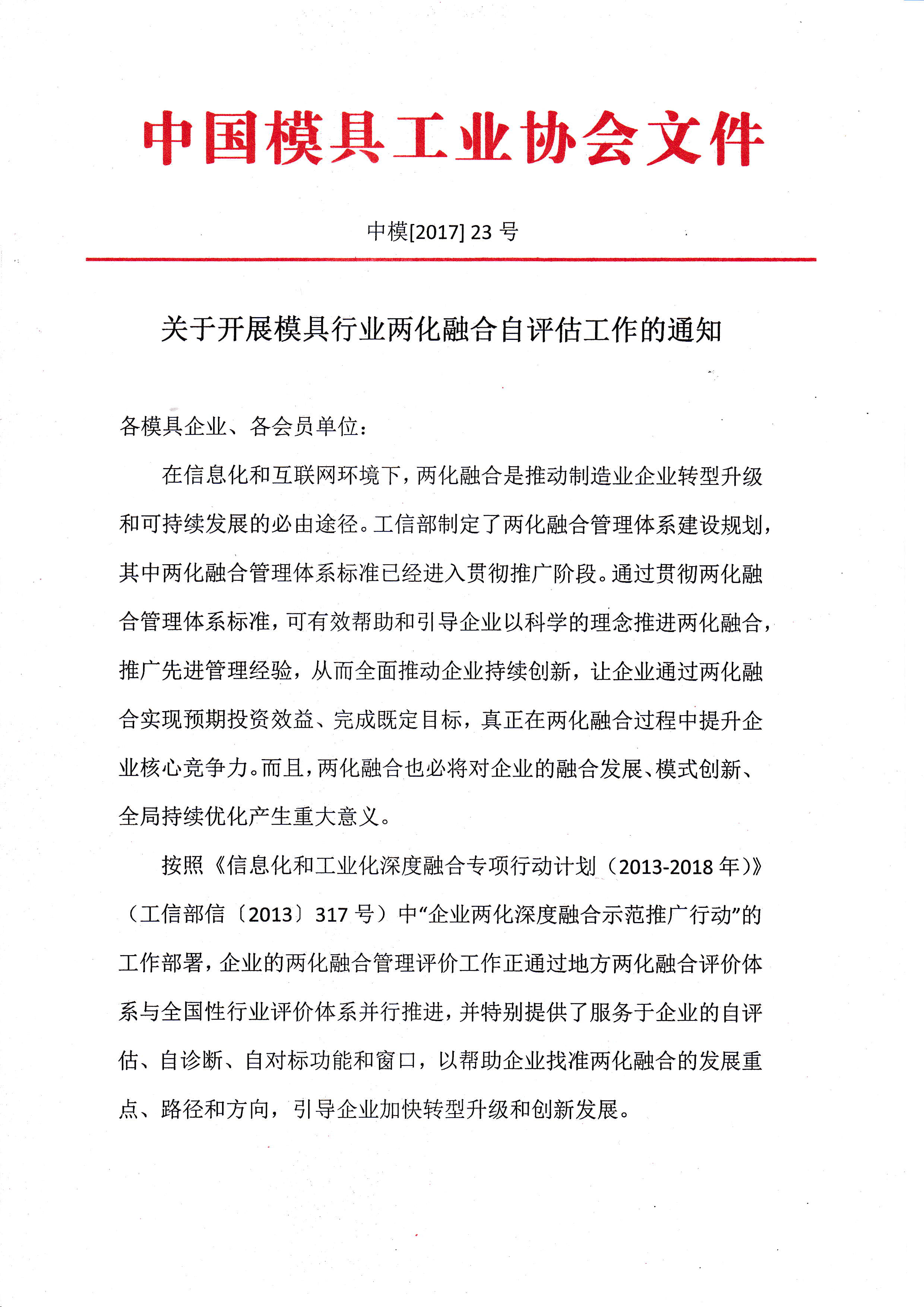 關(guān)于開展模具行業(yè)兩化融合自評(píng)估工作的通知