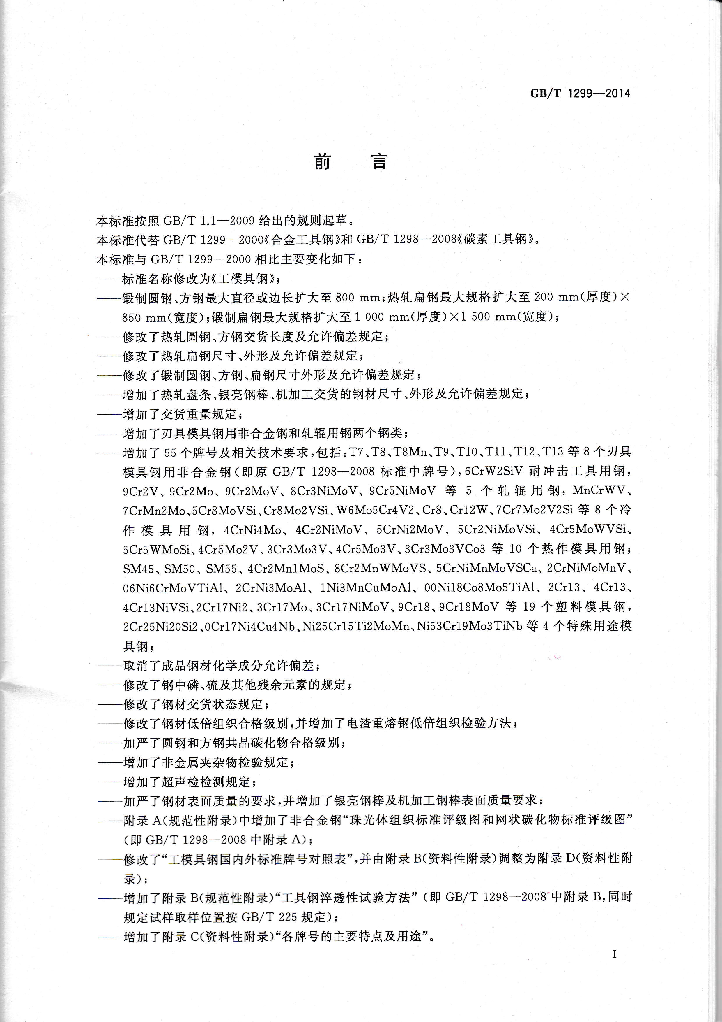 GB/T 1299-2014工模具鋼 國家標(biāo)準(zhǔn)