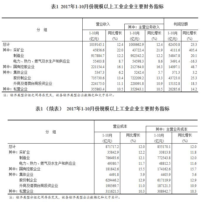 1-10月份,全國規模以上工業企業實現利潤總額62450.8億元,同比增長23.3%,增速比1-9月份加快0.5個百分點。