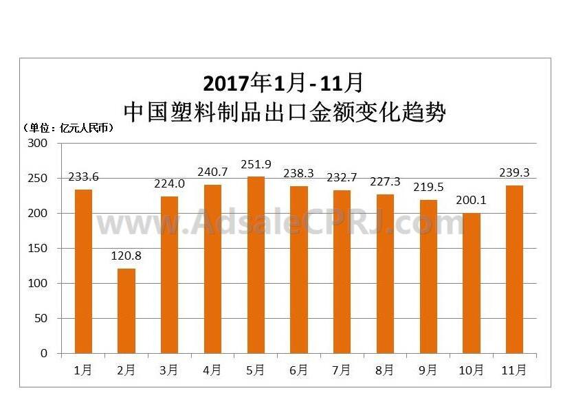 11月出口塑料制品出口239.3億元,同比微增7.6%