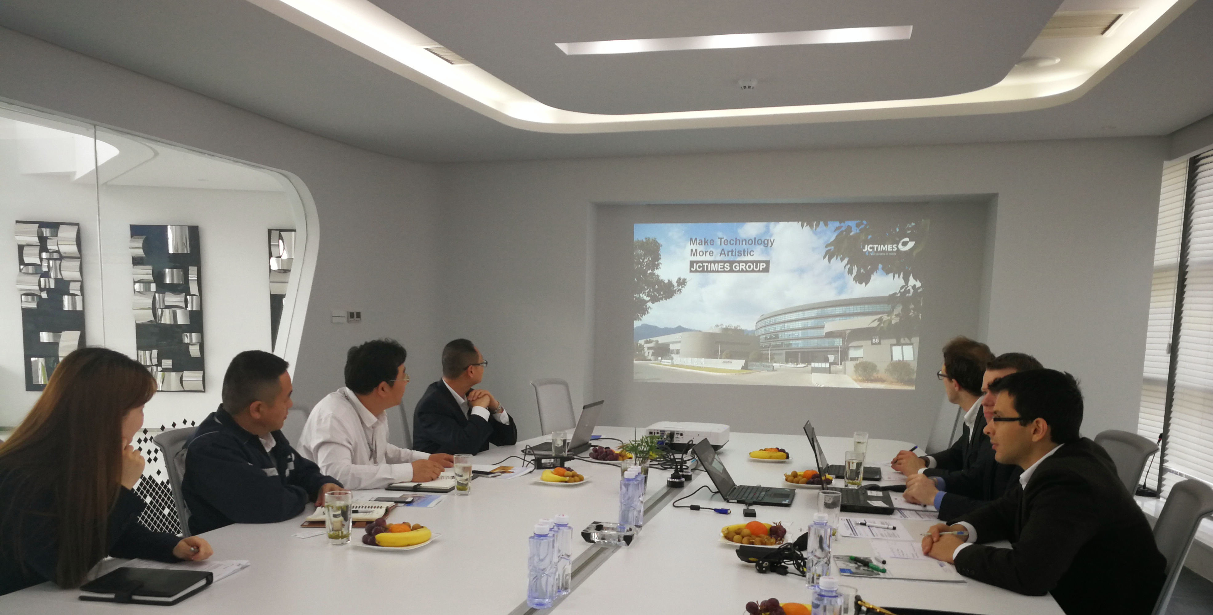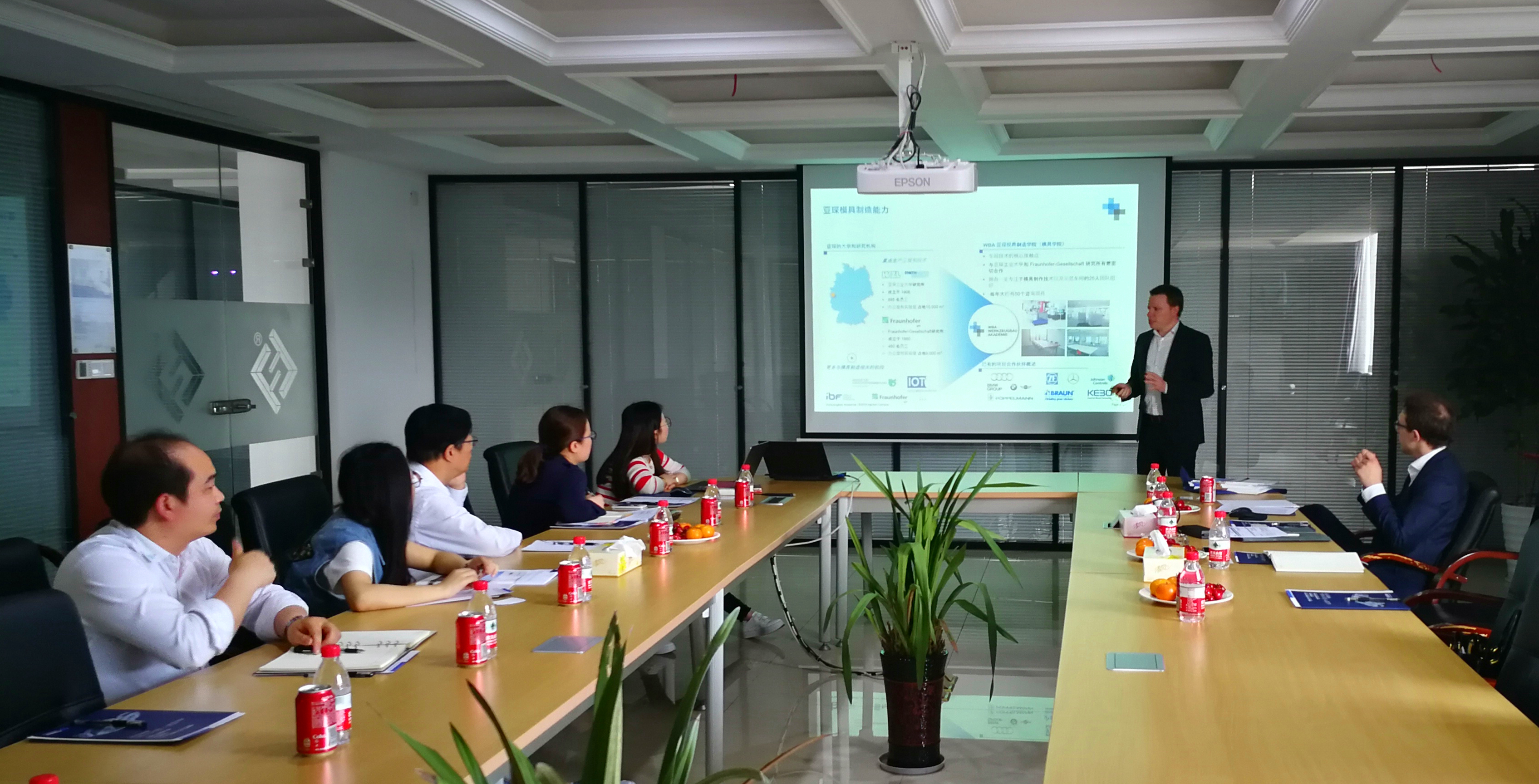 緊張的行程絲毫沒有影響幾位德國專家調研企業的熱情和專注。4月26日上午,中國模協及WBA專家一行四人到訪浙江精誠模具機械有限公司。行政副總經理陳福蓬和技術部主管戴惠斌等人向德國專家詳細介紹了公司情況,德國專家細致地調研了公司生產流程的情況。而走在公司的辦公樓中,德國專家十分贊賞公司讓技術更藝術的理念,并感慨即使在德國也很難見到建筑設計如此有藝術感的模具企業。