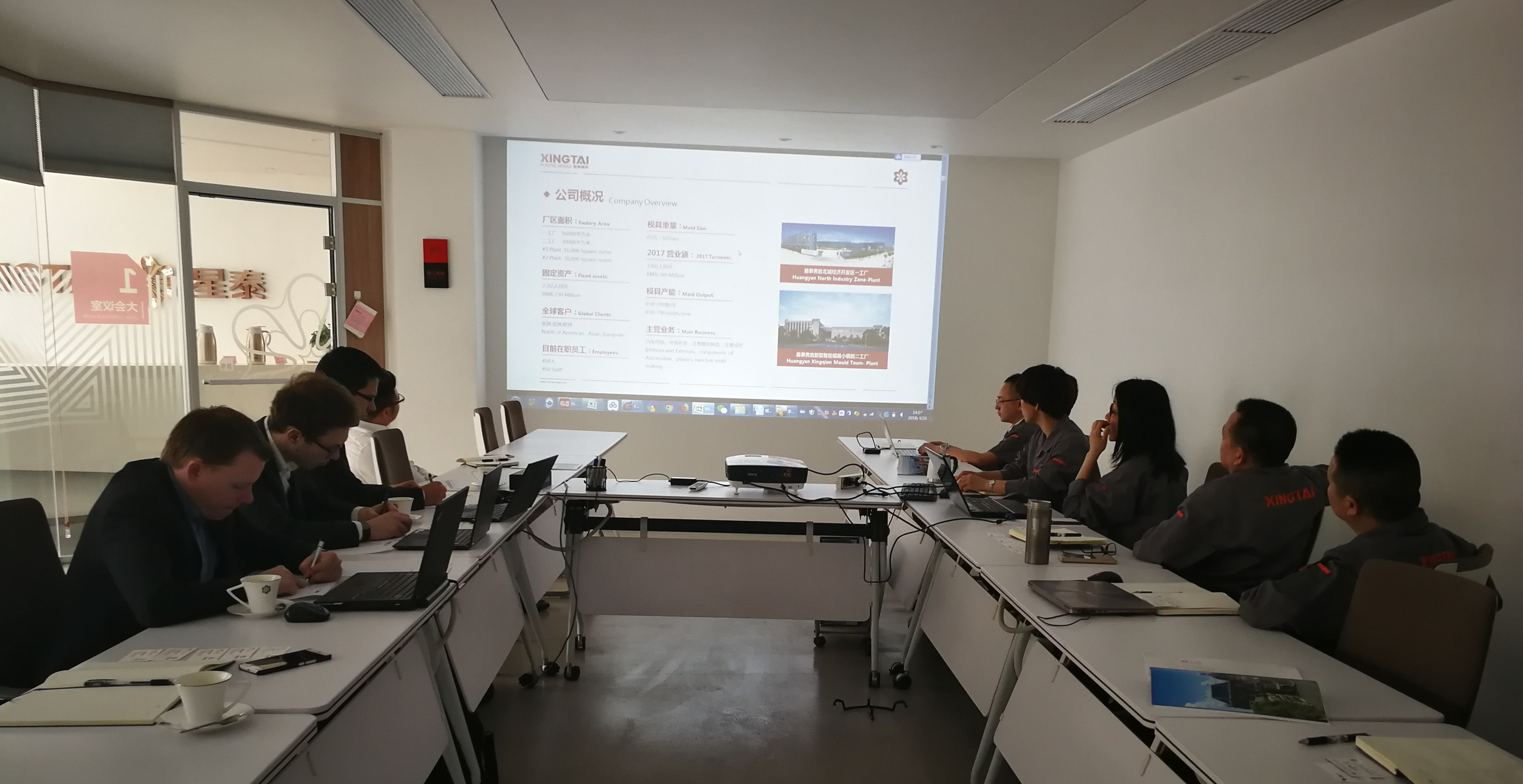 26日下午,一行四人走訪了臺州市黃巖星泰塑料模具有限公司。行政部經理鄭丹娟主持了現場調研會議,總經理胡富足、副總經理柳建軍及星泰各部門經理均參加了會議。德國專家在認真聽取了公司的情況介紹后,詳細調研了公司的生產情況。在走訪各部門結束后,星泰各部門經理與德國專家就問卷中的問題進行了熱烈的討論。