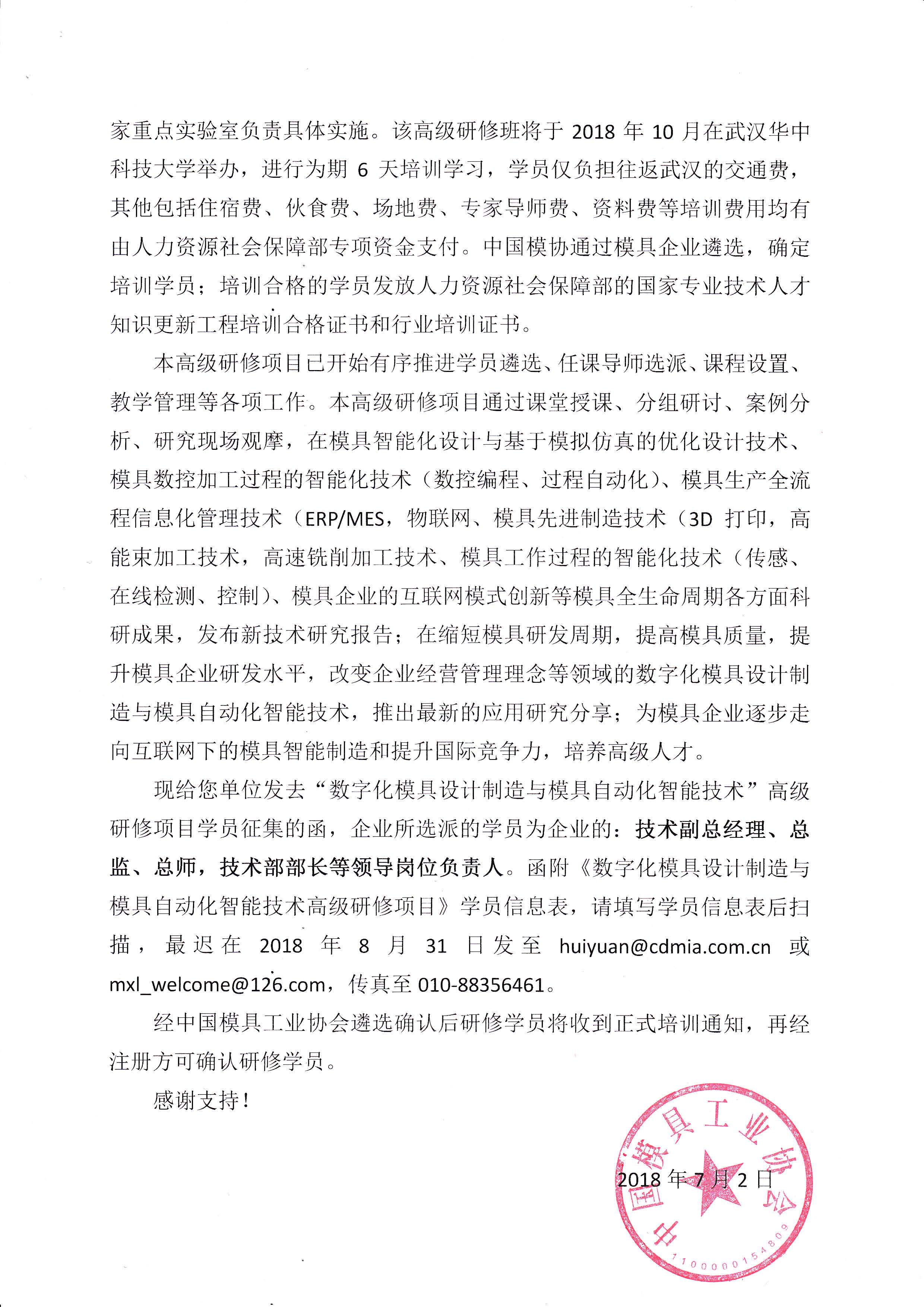 中國模協承辦人力資源社會保障部高級研修項目學員征集函