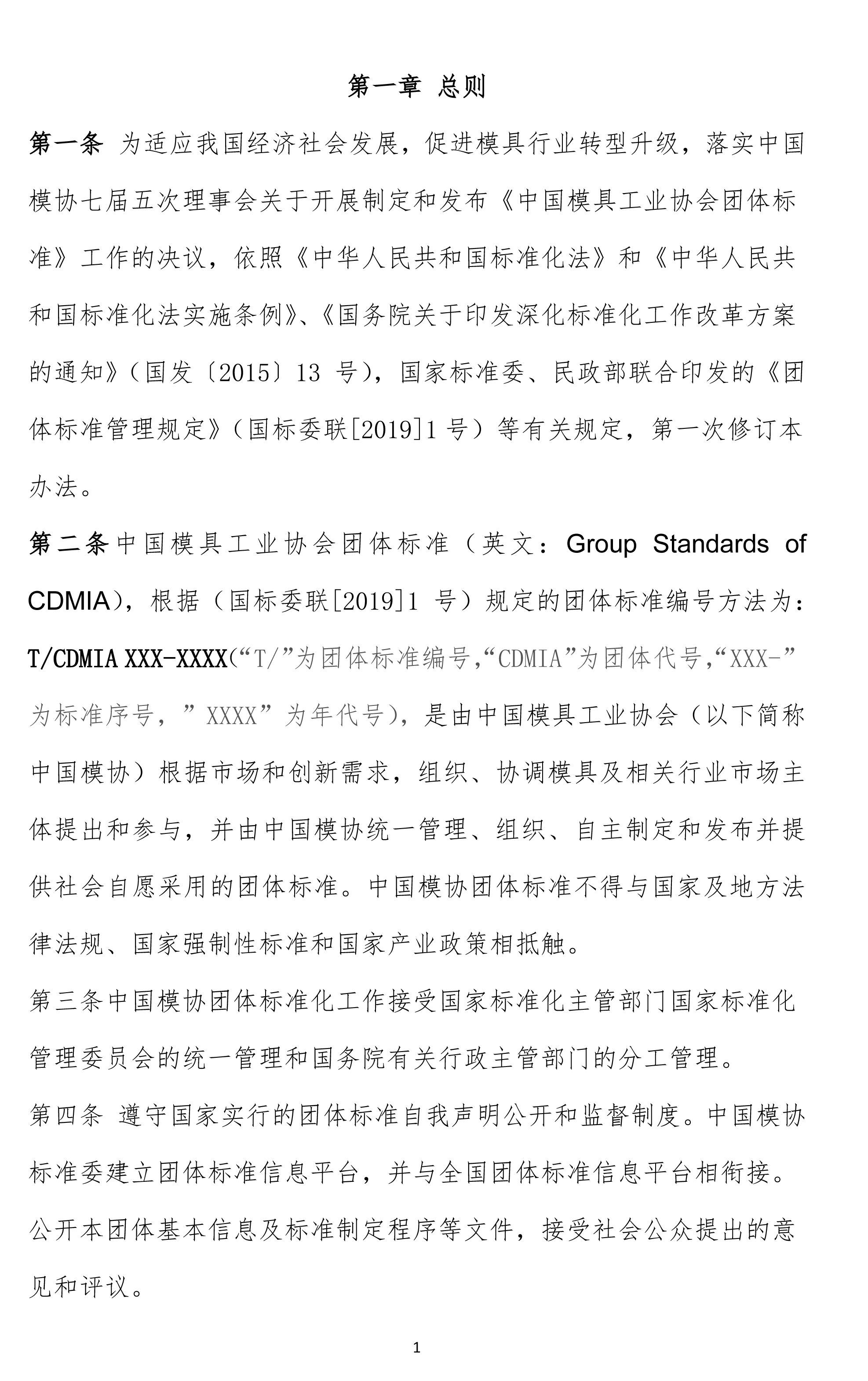 中國(guó)模具工業(yè)協(xié)會(huì)團(tuán)體標(biāo)準(zhǔn)管理辦法(試行)