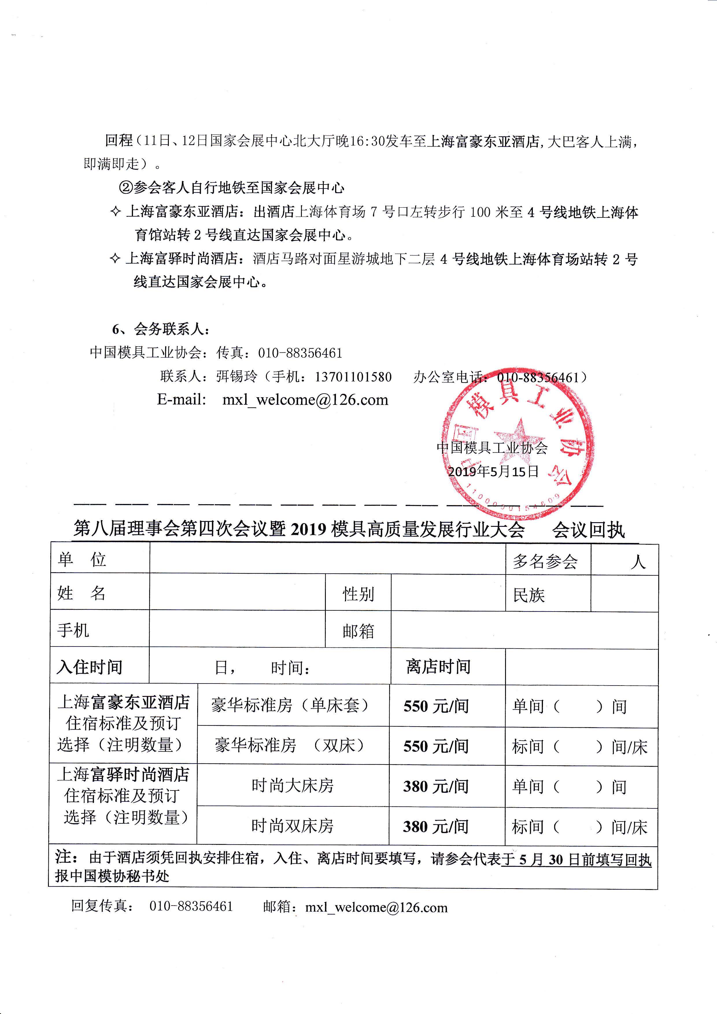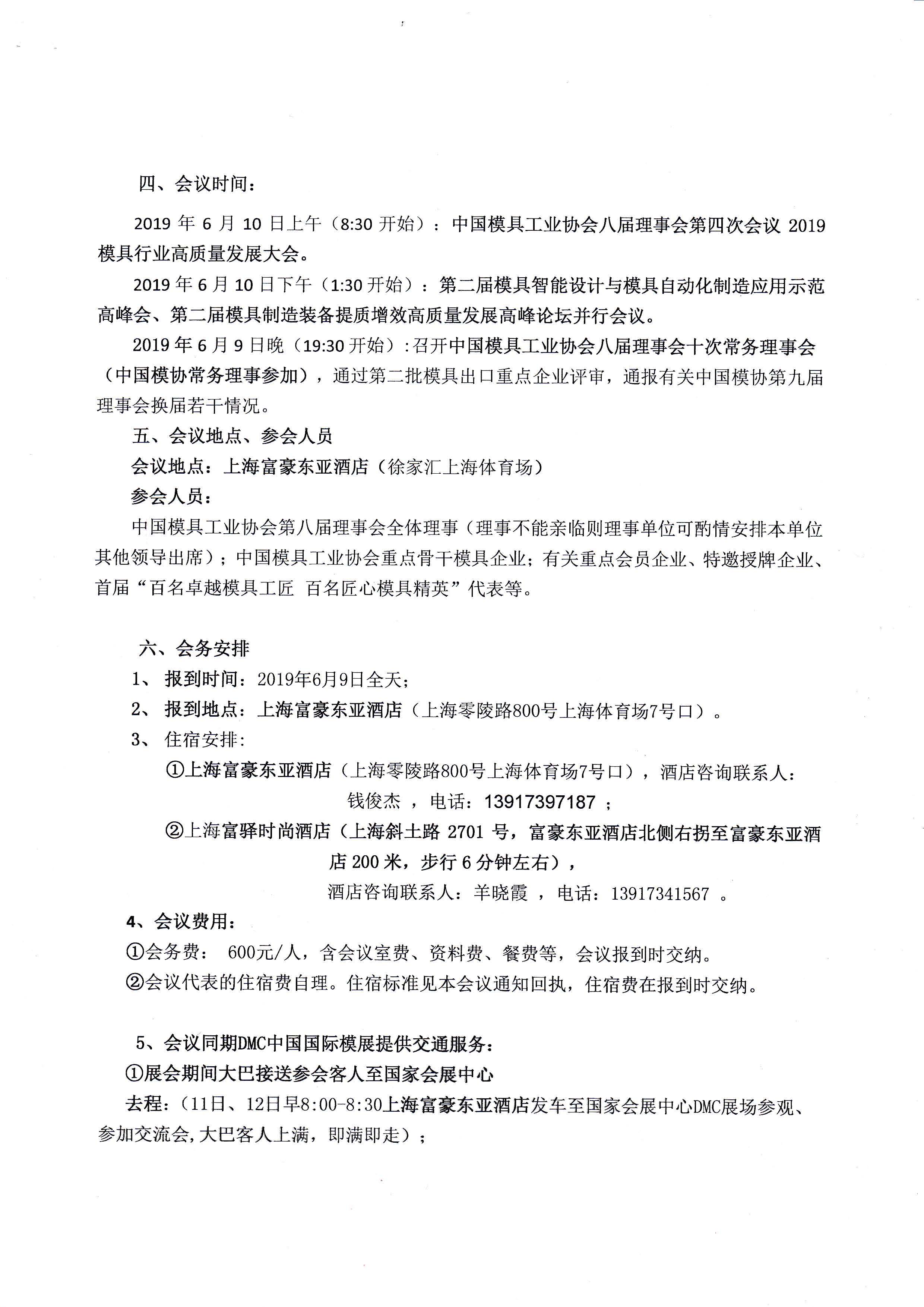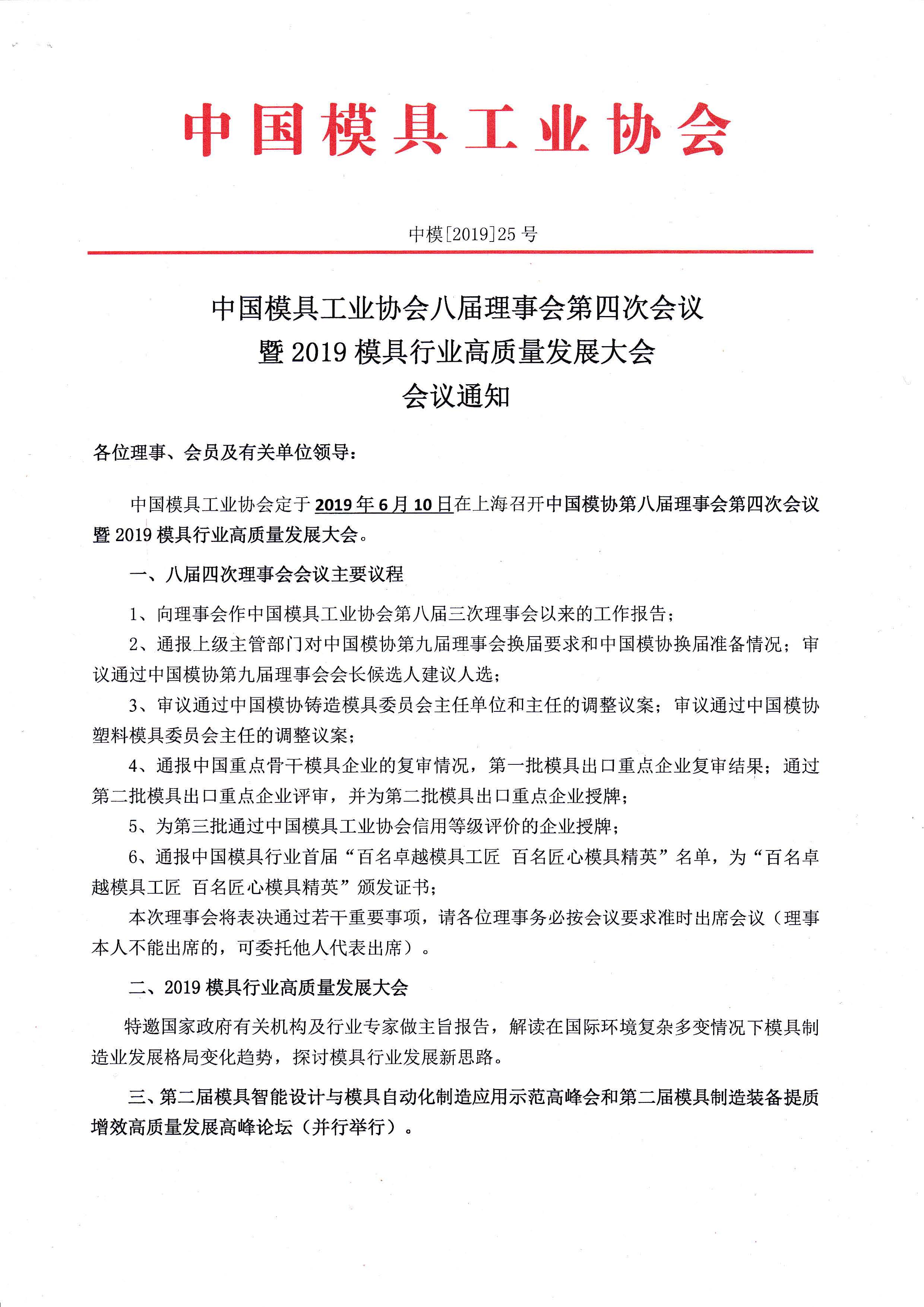 中國模具工業協會八屆理事會第四次會議暨2019模具行業高質量發展大會會議通知