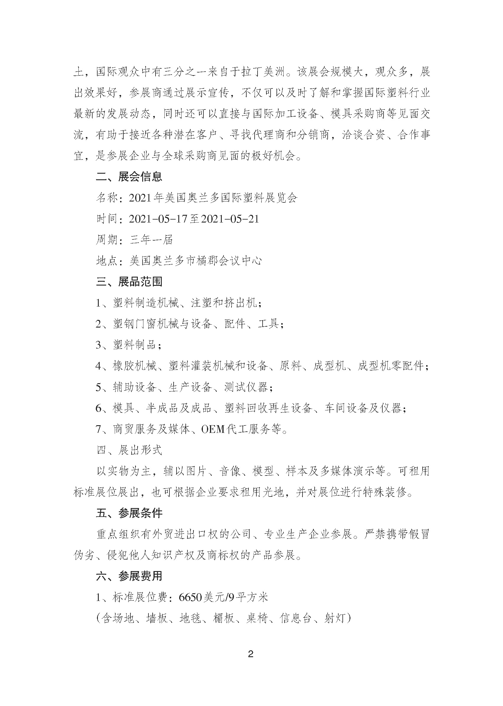 關(guān)于邀請參加2021年美國奧蘭多國際塑料展覽會的通知