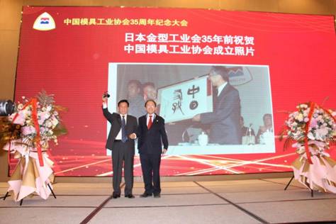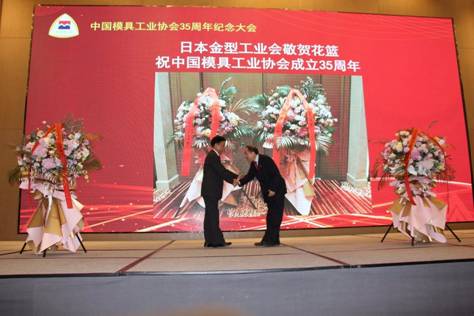 值得一提的是,在大會伊始,日本金型工業會也為本次大會敬送了花籃,祝賀中國模協成立35周年;而在35年前,日本金型工業會也曾敬送過一幅字,祝賀中國模協的成立。此舉,見證了中日兩國模具行業35年來良好的交流與合作。