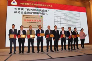 大會由中國模具工業協會(以下簡稱中國模協)秘書長秦珂女士主持。中共臺州市黃巖區委常委、常務副區長蔡理明先生、亞洲模具協會聯合會副主席牧野俊清先生為本次會議致賀詞;中國模協會長武兵書先生做了主題為《中國模協35年回顧與發展報告》的演講報告;對“中國模協35年發展卓越人物”“中國模協35年發展杰出人物”“優秀社會組織工作者”進行了表彰并頒發證書;舉行了中國模具行業首屆“百名卓越模具工匠 百名匠心模具精英”事跡冊首發式;最后為榮獲“優秀模具供應商”稱號的企業頒發牌匾和證書。