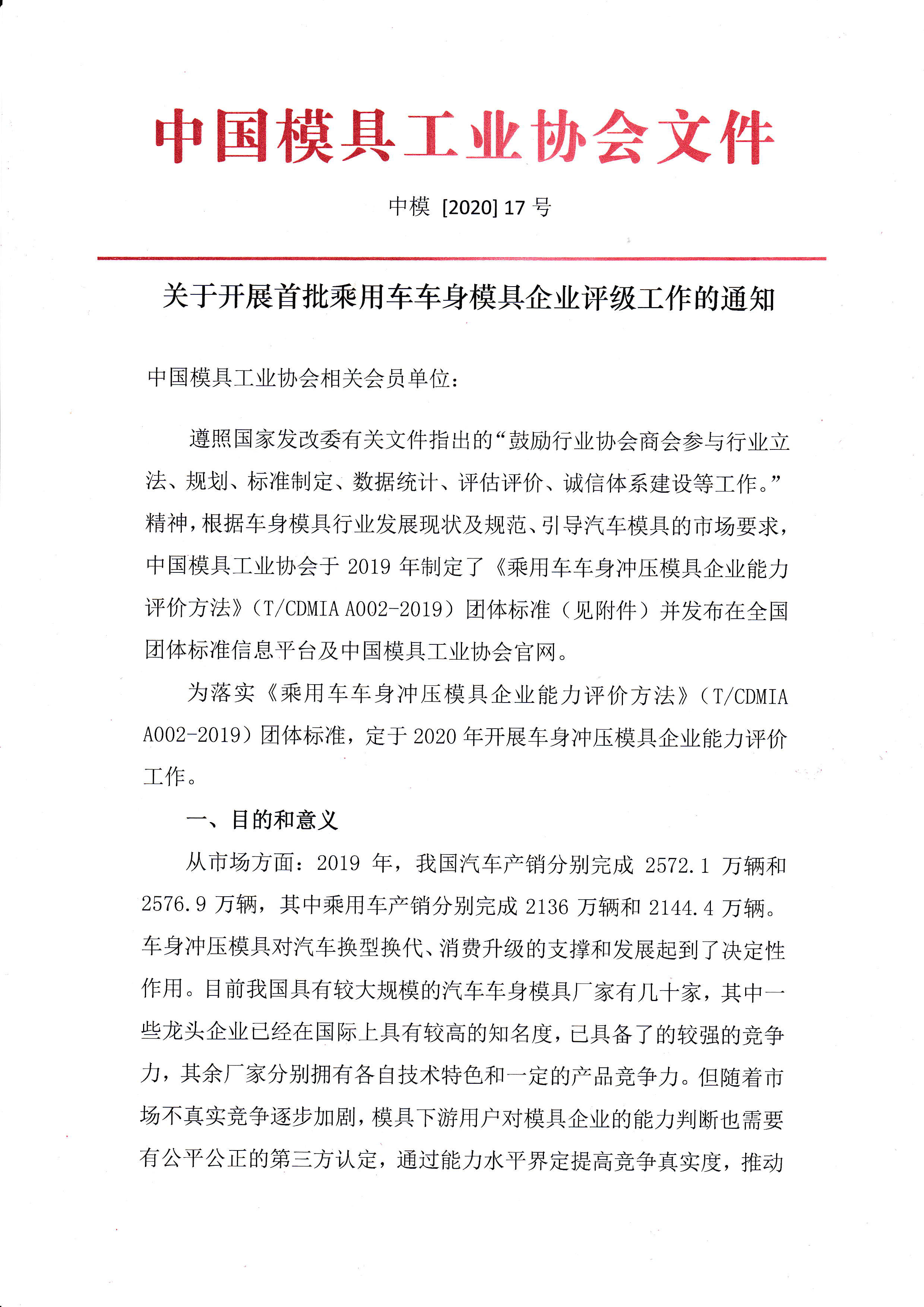 關(guān)于開展首批乘用車車身模具企業(yè)評級工作的通知