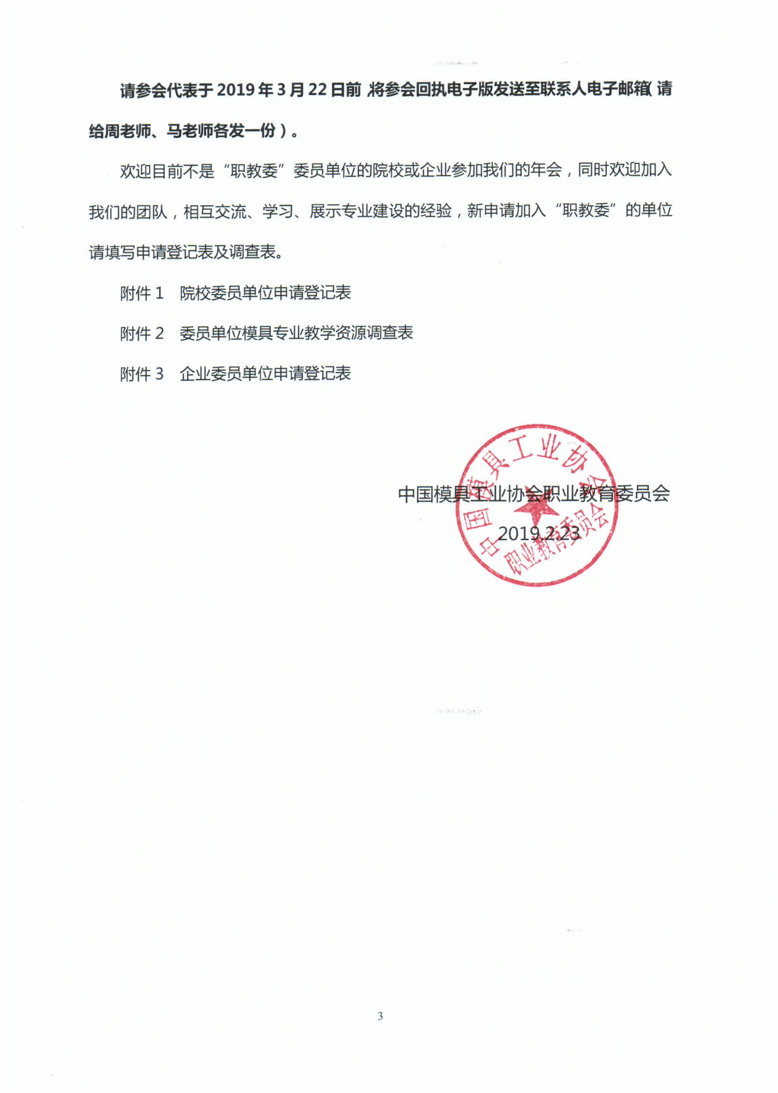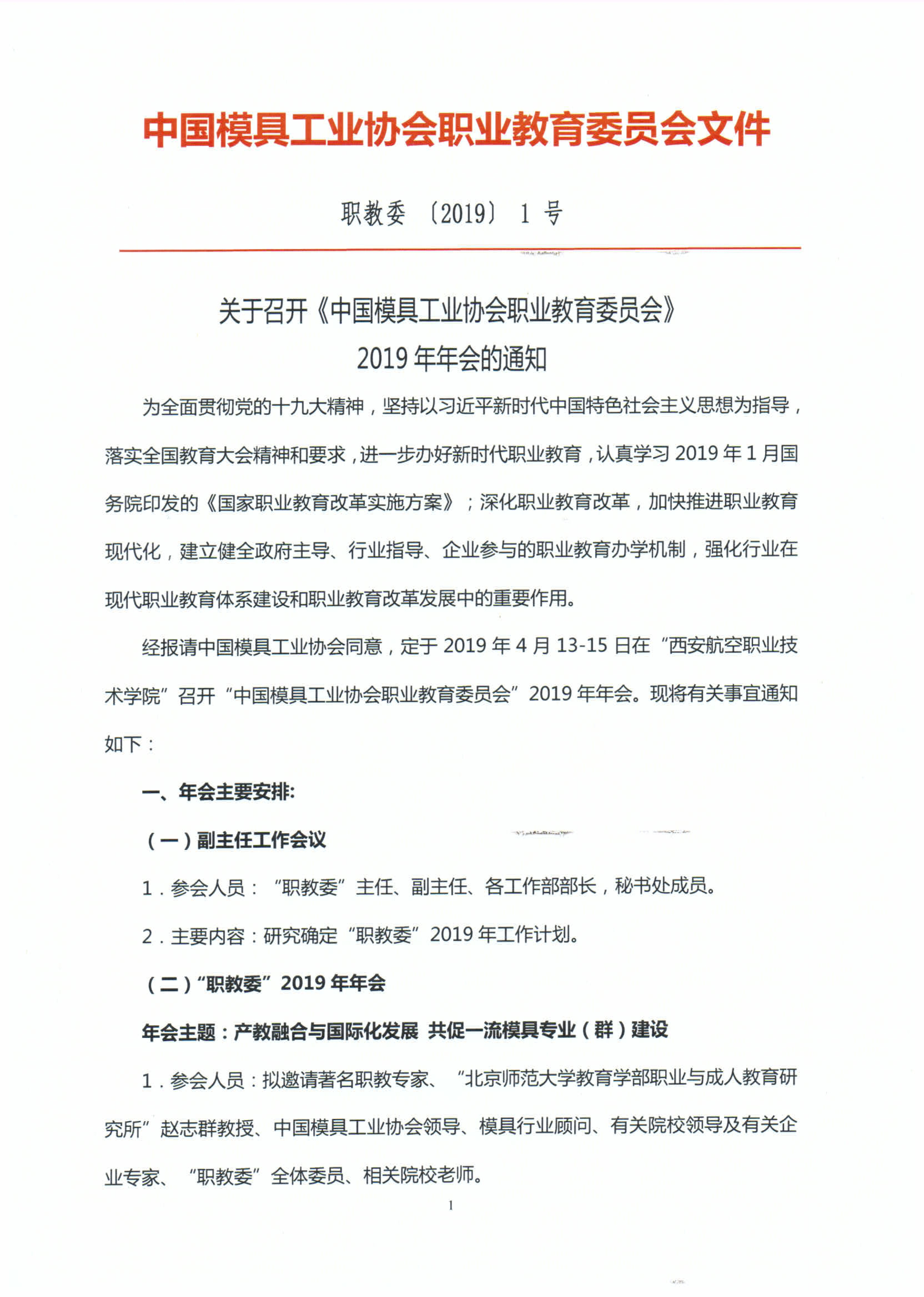 關于召開《中國模具工業協會職業教育委員會》2019年年會的通知