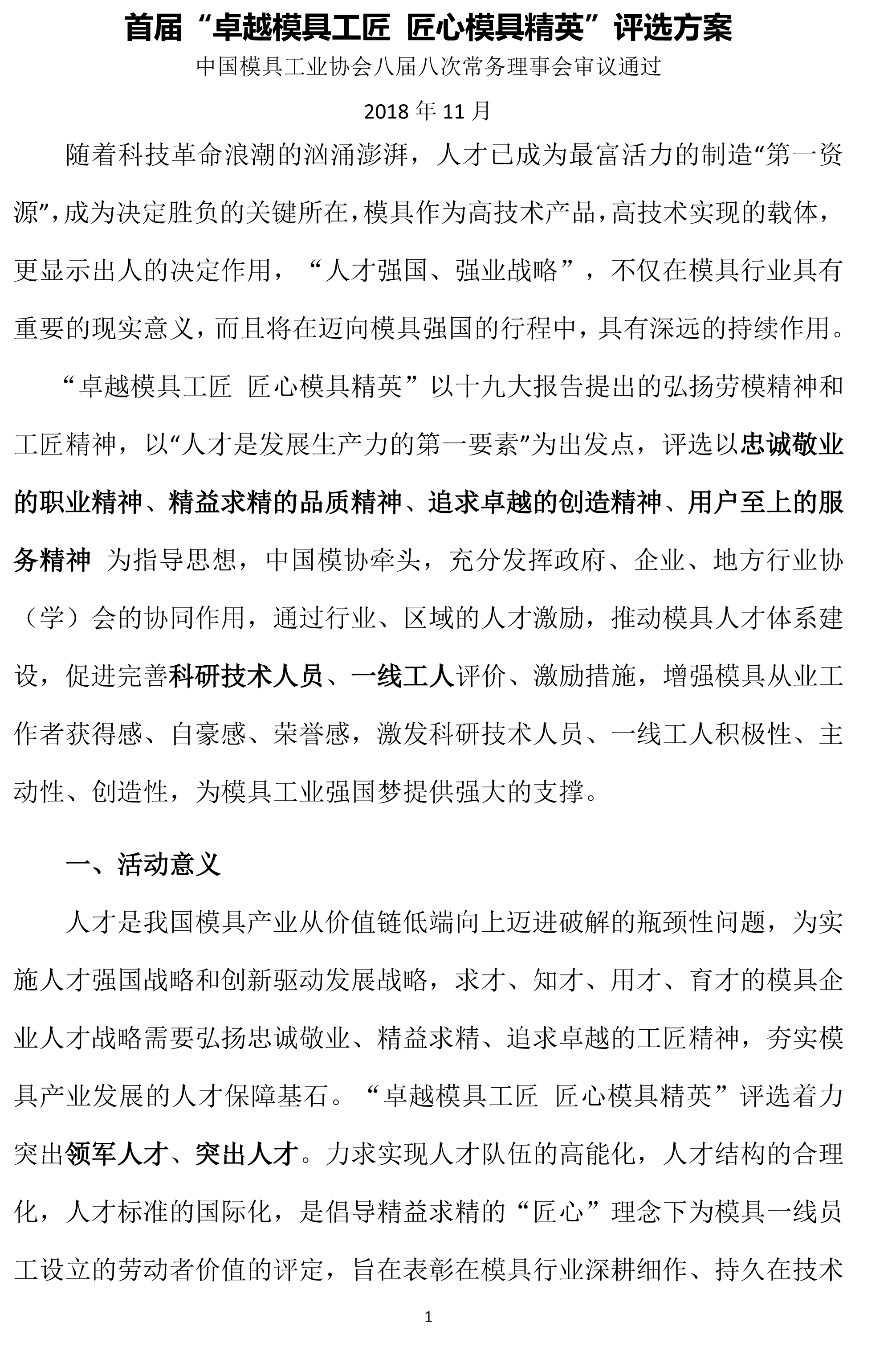 首屆“卓越模具工匠 匠心模具精英”評選方案