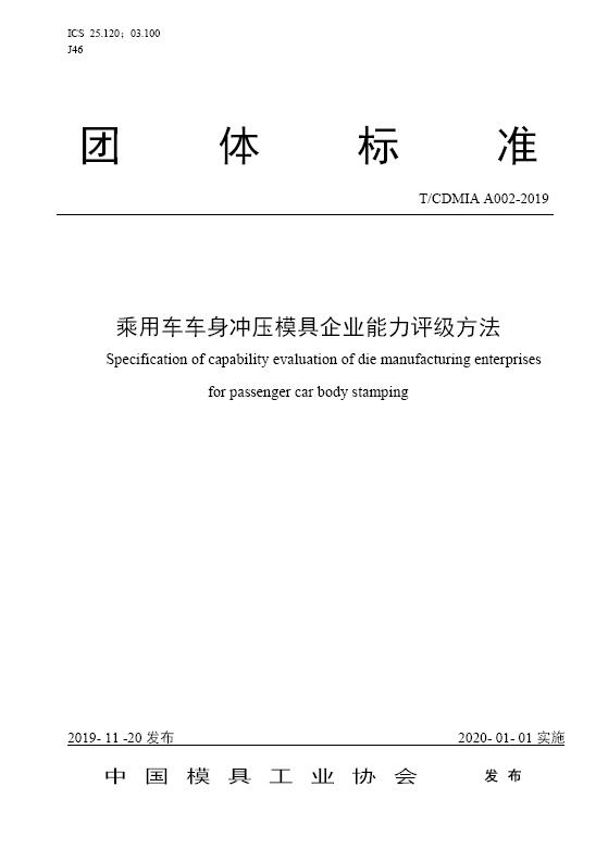 中國模協(xié)標(biāo)準(zhǔn)A002-乘用車車身沖壓模具企業(yè)能力評級方法-2019