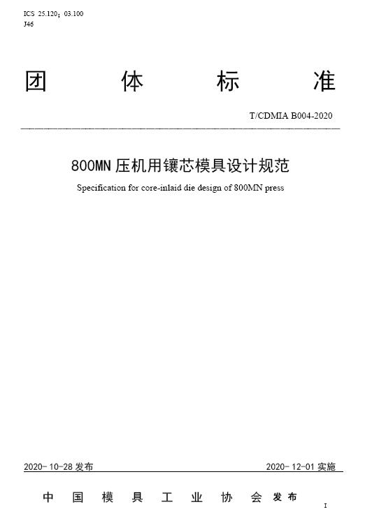 中國模協(xié)標(biāo)準(zhǔn)B004-800MN壓機(jī)用鑲芯模具設(shè)計(jì)規(guī)范-2020