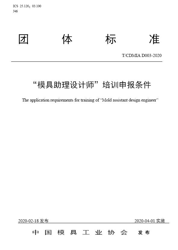 中國模協(xié)標(biāo)準(zhǔn)D003-模具助理設(shè)計師培訓(xùn)申報條件-2020