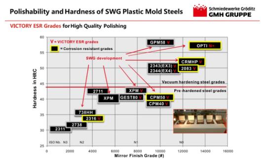 德國葛利茲鋼廠根據(jù)中國市場(chǎng)需要打造的明星產(chǎn)品738HH和XPM,改良自傳統(tǒng)1.2738鋼種,相比1.2738截面硬度更加均勻,均有更加穩(wěn)定的拋光及曬紋性能,目前已成為模具鋼行業(yè)的明星產(chǎn)品,汽車及家電行業(yè)大量使用。