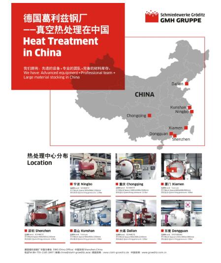 德國葛利茲鋼廠在中國模具產(chǎn)業(yè)集中的華南、華中及華東地區(qū)均配套有真空熱處理服務(wù),以確保中國客戶購買到葛利茲產(chǎn)品的同時(shí)可以享有葛利茲熱處理的品質(zhì)保證。