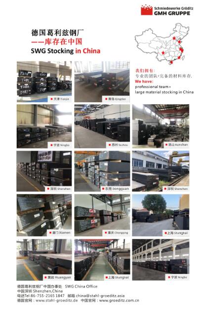 德國葛利茲鋼廠擁有全球最大的電渣重熔生產(chǎn)線之一,可生產(chǎn)重量達(dá)84噸的鋼錠。葛利茲鋼材在中國的長期庫存為20000噸,精密鍛造鋼材尺寸可達(dá)2000x1000xLmm,可滿足塑膠、壓鑄不同模具行業(yè)的需求。