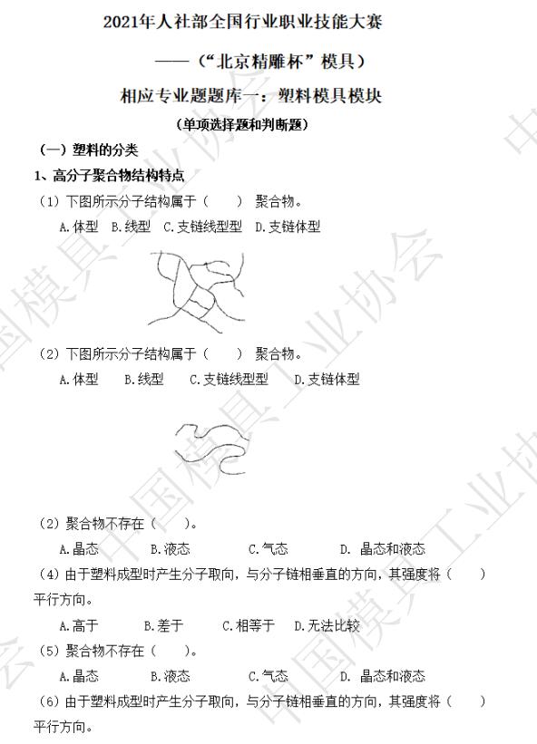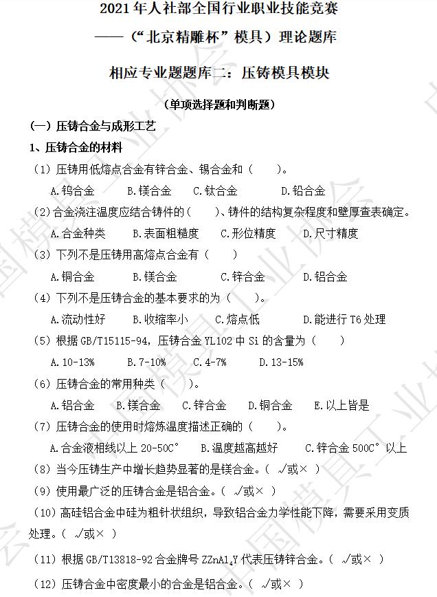 相應專業題題庫:塑料模具模塊、壓鑄模具模塊