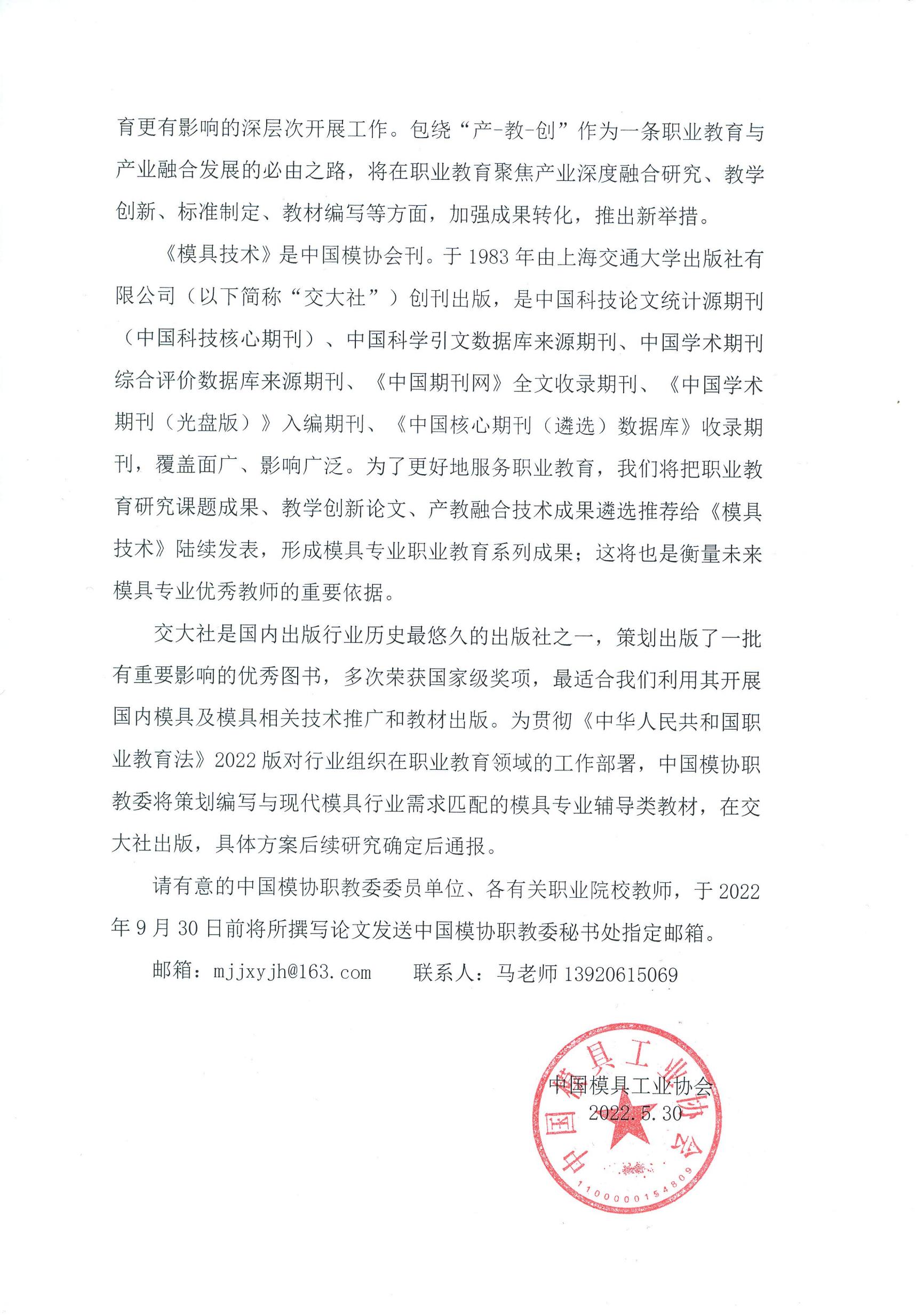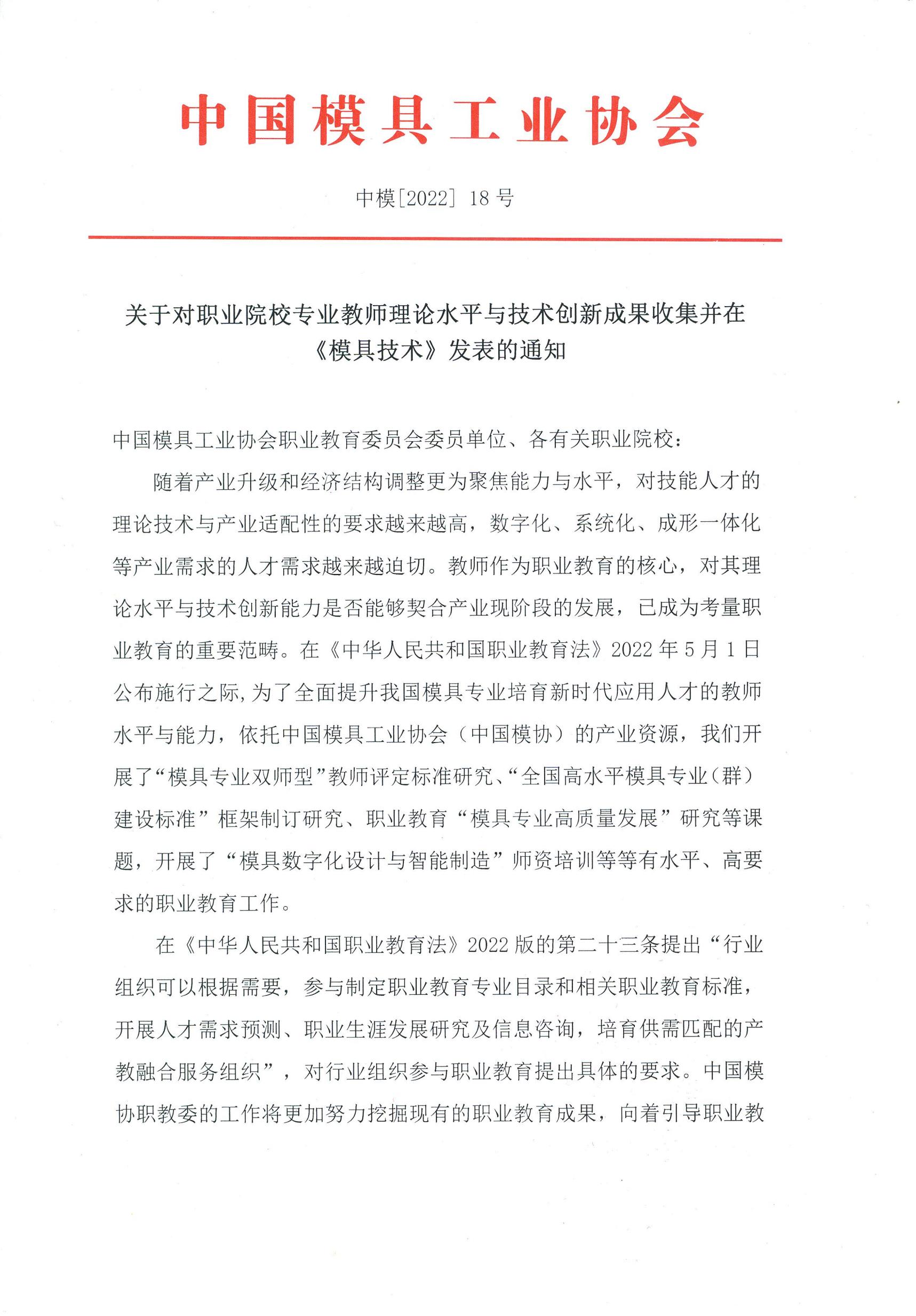 關(guān)于對職業(yè)院校專業(yè)教師理論水平與技術(shù)創(chuàng)新成果收集并在《模具技術(shù)》發(fā)表的通知