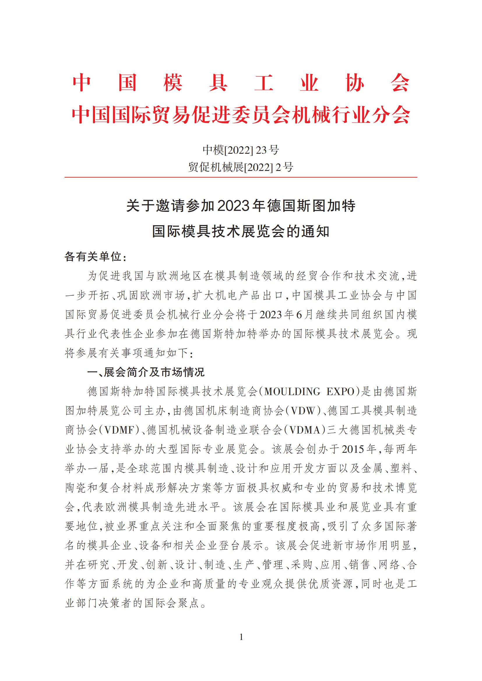 關于邀請參加2023年德國斯圖加特國際模具技術展覽會的通知