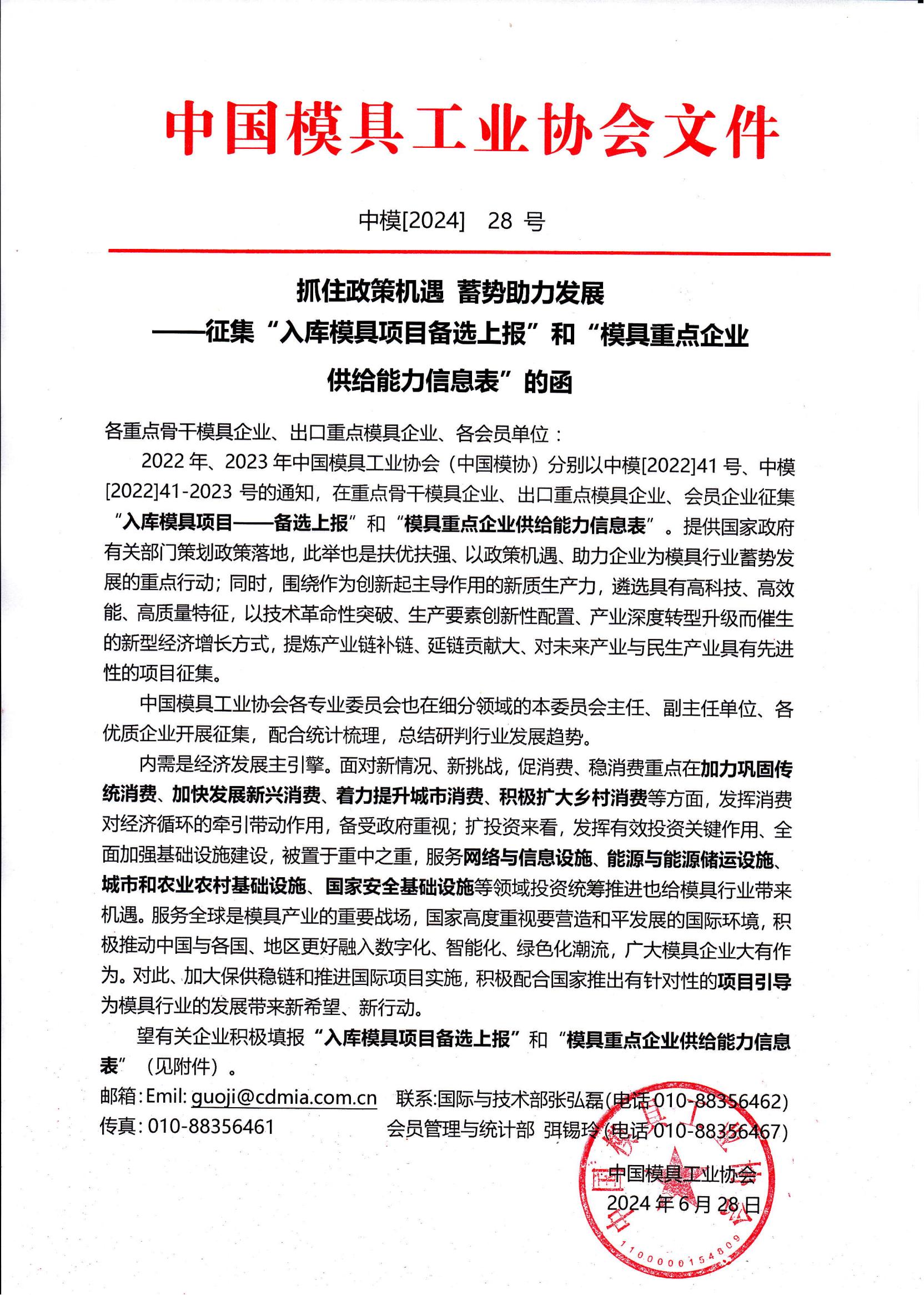 抓住政策機遇 蓄勢助力發展——征集“入庫模具項目備選上報”和“模具重點企業供給能力信息表”的函